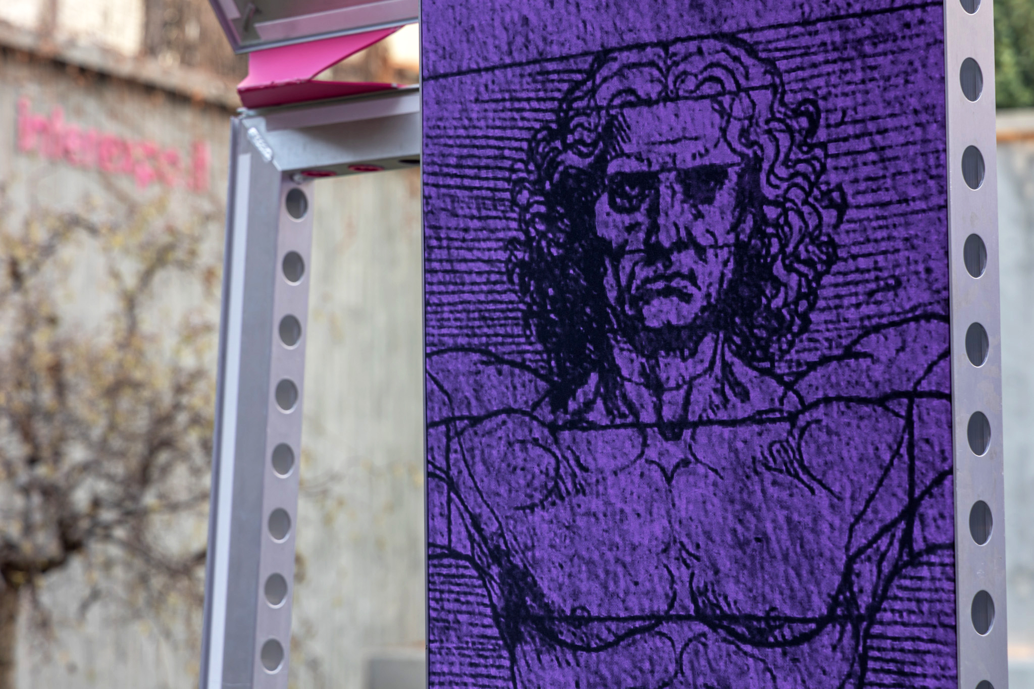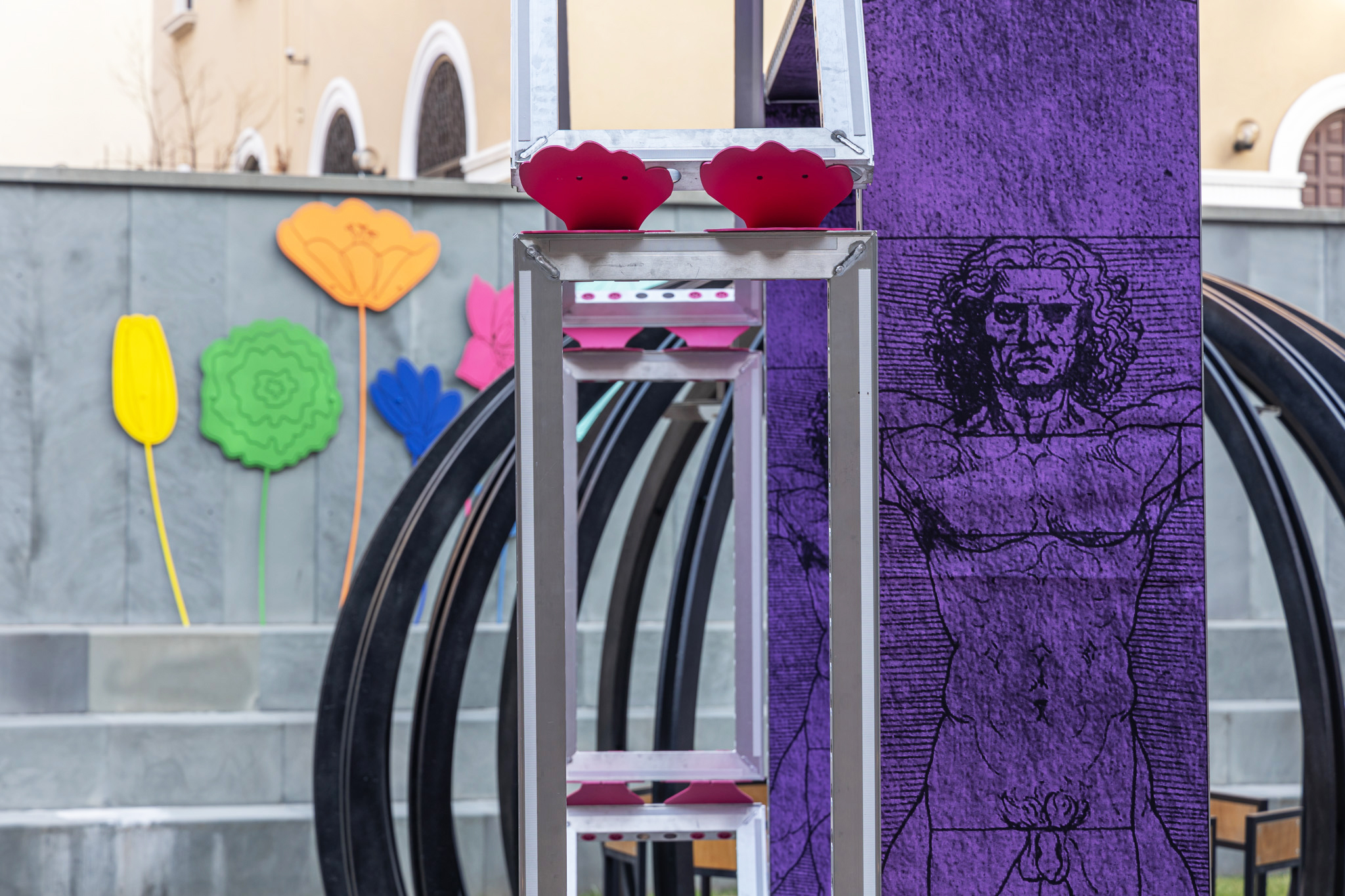 Genesis è un elemento ad anello che riproduce il celebre Uomo Vitruviano di Leonardo da Vinci. La sua struttura è realizzata interamente con frame in alluminio beMatrix e rivestita in tessuto stampato in sublimazione. È un’istallazione pensata per coinvolgere attivamente i visitatori, che possono entrare all’interno dell’anello e vestire i panni dell’Uomo Vitruviano.
